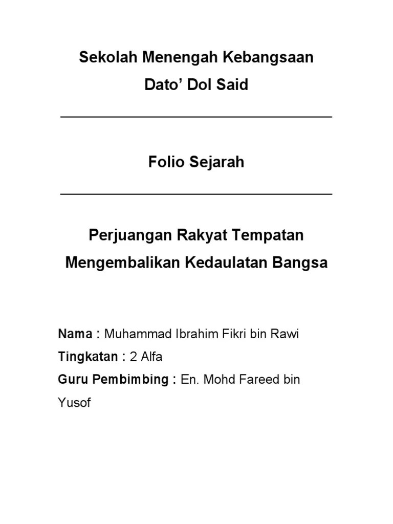 Contoh folio sejarah pt3 2021 bagi pelajar tingkatan 3.